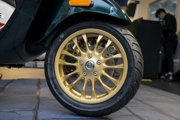 ![]() VESPA Racing Sixties特仕版共推出兩種全新配色,分別為經典的競速綠─以復古綠為底,搭配簡潔黃色線條,以及極速白─以摩登白色為底佐以俐落紅色線條。外觀套件上以低調的消光黑來襯托車身的雙色調。包含左右後視鏡、儀表飾框、前土除飾蓋、後扶手、頭尾燈飾框、消音器飾蓋、乘客腳踏、懸吊飾蓋、前喇叭領結飾蓋以及側邊飾條等。