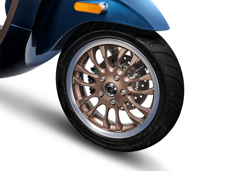 ![]() 專為台灣市場打造的Vespa Sprint S 150台灣10週年特仕版,挑選了Vespa在台灣極富人氣的Sprint車款打造,選用夢幻質感的色彩「靛空藍」作為車色,並以具有奢華未來感的「青銅棕」金屬色系作為車款飾件,畫龍點睛般地點綴了車款外觀,提升車款的精品質感。