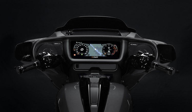 2023年全新CVO全面升級儀表板功能與外觀,顛覆以往使用傳統類比螢幕的框架,搭載12.3吋TFT全彩顯示螢幕與防反光鏡面,提供了良好的可視性;觸控螢幕的性能則能在任何天氣狀況下使用,無論是雨天或帶著手套,都可以滿足你的任何需求。系統部分採用Skyline OS系統,騎士可根據需求切換多種顯示內容,並可自選客製三種顯示選項於儀表板上,同時也提供三種騎乘模式隨心調整,隨時應變道路狀況與切換你想要的騎乘感受與體驗。