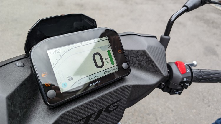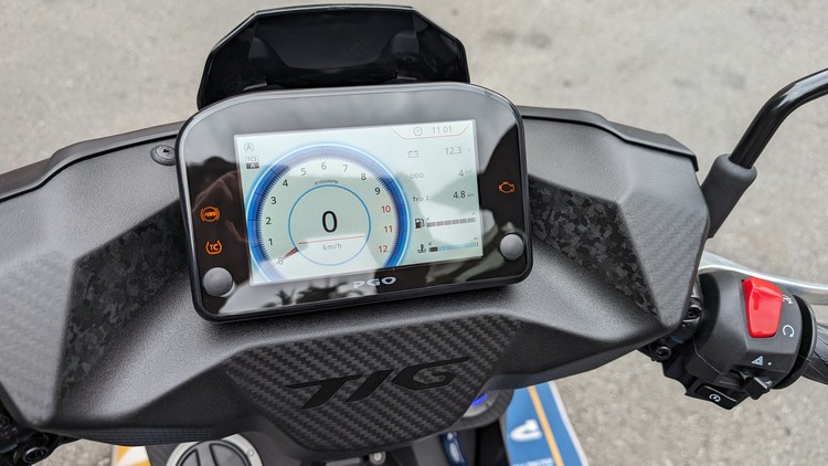 TIG 征服版為了強調主動性安全系統傑出,PGO 將卡鉗定調為藍色印象,以此為出發點。卡鉗的藍色作為基底,加入變色效果使其漆面具層次感,再以先前具代表性的彪炫版橘虎進行微調,佐以霧面漆料與亮面貼紙強化整體衝擊感;車身線條上的設計則是想表現張狂感,前斜板上刻意營造兩道強而有力的線條,有著獠牙和向前攻擊的意象,後方的線條則是修飾車尾,讓視覺看起來更俐落,強調 TIG 征服版的非凡。
