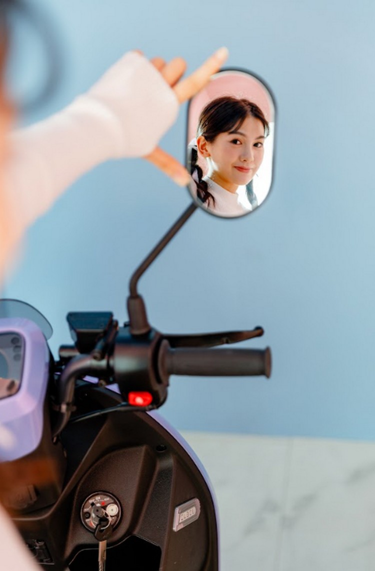 濕熱的天氣下,拿下安全帽總想確認妝髮的完整性,對此CLBCU搭配業界首創「可旋轉後照鏡」, 貼心的旋轉式設計,輕輕一轉直式的大鏡面讓妳愜意整理,形象都有CLBCU呵護;顧及騎車安全性,「獨創貼心拉桿」針對女性手掌尺寸,優化拉桿寬度加寬、距離縮短,一手簡單掌握。