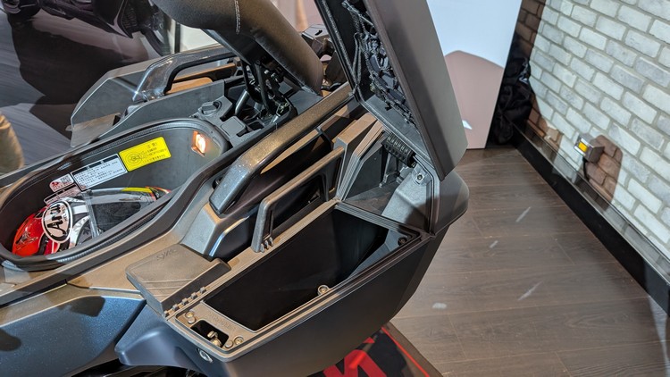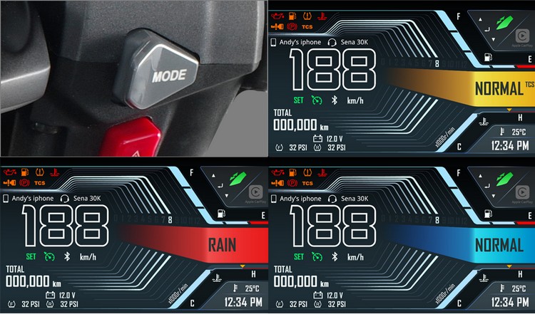 ![]() ▲整合式雙側箱_專利快拆機構![]() ▲車廂置物空間![]() ▲整合式後箱架乘上TTLBT準備啟程,使用ONETOUCH免鑰匙啟動系統,點按開關即可啟動車輛開啟車箱,透過全新的觸控式7”全彩儀表,直覺點按操作車輛各項資訊並配有胎壓偵測系統,以及三種風格切換,行駛至昏暗環境下透過光感應功能自動切換夜間模式提高辨識度。 即將出發設定好導航目的地,TTLBT將以無線藍牙方式連結手機及藍芽耳機,啟動大型重型速克達首創的APPLE CARPLAY車載系統,可輕鬆掌握地圖導航、音樂、通訊感受智能便捷的駕馭樂趣。 ![]() ▲觸控式7”全彩儀表_APPLE CARPLAY車載系統![]() ▲ONE TOUCH免鑰匙啟動系統延續MAXSYM TL優異的引擎動力及車架設定,TTLBT搭載508c.c.並列雙缸水冷引擎, 可輸出最大馬力45.6P最大扭力5.1kg-m,車架部分採用雙三角台、41mm倒立式前叉、六連桿懸吊、固鎖式引擎車架帶來靈活穩定的操控性,前後懸吊也針對巡航的舒適體驗重新設定,並且副車架強度提升了36%,以此對應更高的乘載需求。 ![]() ▲508c.c.並列雙缸水冷引擎![]() ▲固鎖式引擎車架_六連桿懸吊在長途巡航的旅程當中,必然會遇到各種路途的變化,氣候改變、晝夜交替、蜿蜒山路等等不可預期的狀況,TTLBT將提供足夠的安全性來面對一切。TTLBT有三種動力模式 可切換,在車輛靜止的情況下按壓右把手MODE鍵可進行模式切換。 ![]() ▲[NOMAL TCS模式] 代表全動力+TCS功能開啟、[NOMAL模式] 代表全動力並關閉TCS功能、[RAIN模式]透過降低引擎5500轉前的出力降低雨天的打滑風險蜿蜒山路的過彎行駛時TTLBT搭載全新BOSCH9.3代 MSC車輛穩定控制系統,即所謂的彎道ABS與TCS,透過六軸慣性感知器及引擎控制單元,更精準地控制車輛在彎道中的剎車及引擎出力,幫助騎士在彎中保持更好的循跡性,並降低打滑風險