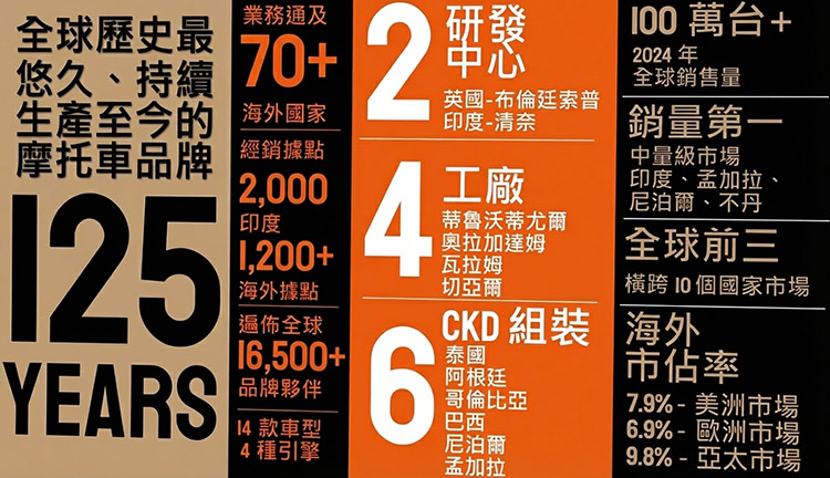 ▲Royal Enfield在英國及印度設有技術研發中心,同時在全球多國都擁有CKD組裝廠,是全球最具規模的摩托車品牌之一。