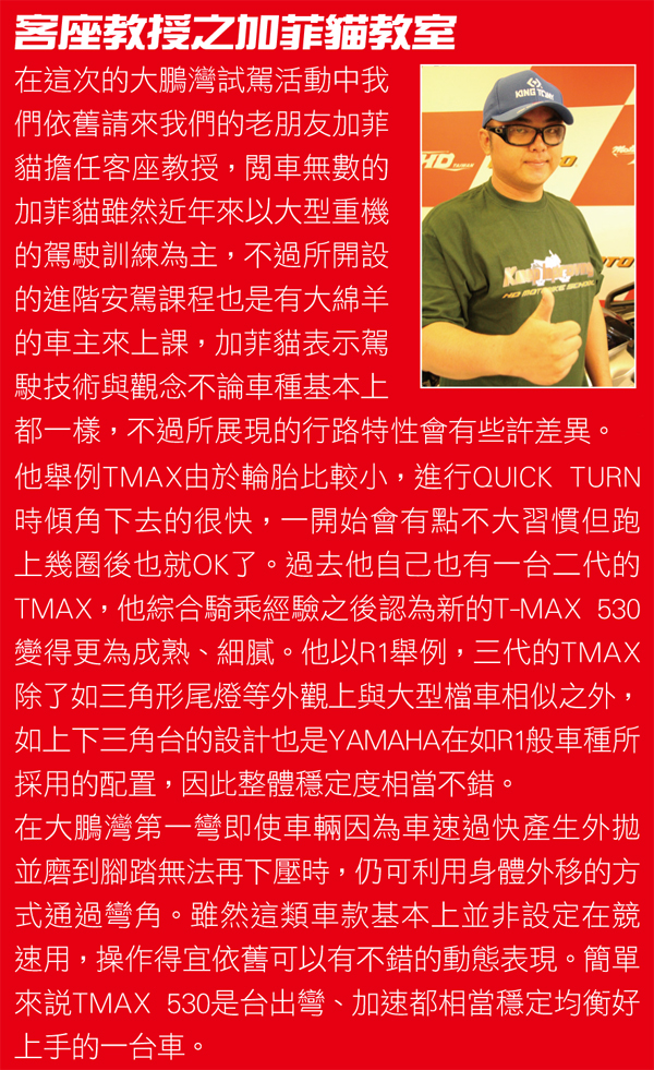 由於出刊作業的關係,實際試車報導赴印出刊的時候車子已經銷售近一個月了,截自出刊前TMAX在台傳出的預售數字也相當漂亮,讓台灣山葉重返大型重機銷售的信心又提升不少。