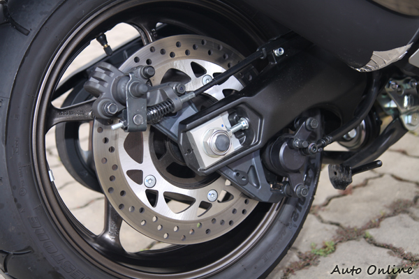 ▲為了強化煞車,三代TMAX的後輪碟盤由267mm加大到282mm,由於相當靈敏得花些時間適應。