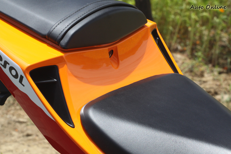 ▲參照當家戰駒RC212V在引擎前端的整流罩多了一個通風口,有助於散熱。