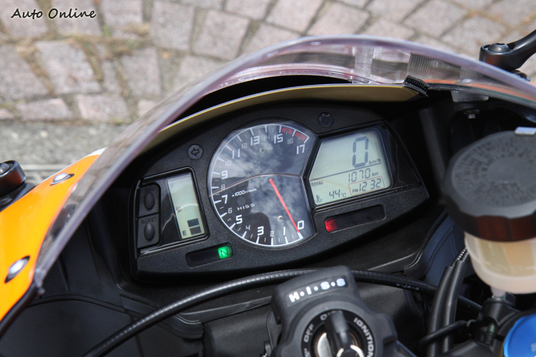 此外如儀表版的部分與前代一樣,走的是比較簡單的路線。不過實際騎乘時發現儀表容易被風鏡在視覺上切成兩半,是比較不方便的地方。