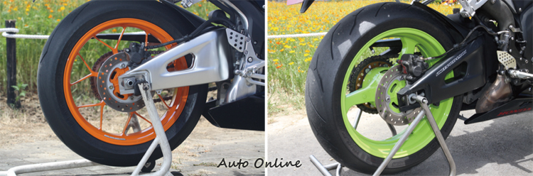而另一台在車頭上寫有HANNspree字樣的600RR則是紀念Honda的Ten Kate車隊在2010年SBK獲得冠軍所推出的特式版。與Repsol一樣這個被翻成瀚斯寶麗的HANNspree車隊其實是台灣的廠商,以製造液晶電視面板起家。因此誰說贊助賽車沒有用,押對寶可是紅到全世界去。一般來說特殊塗裝車款會比素色版車型貴2~3萬不等,但換來更炫的塗裝與被注目的快感可是無價啊。