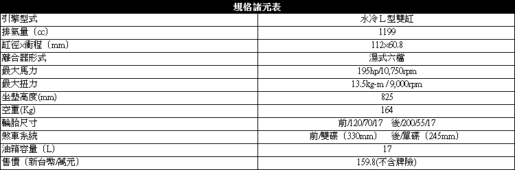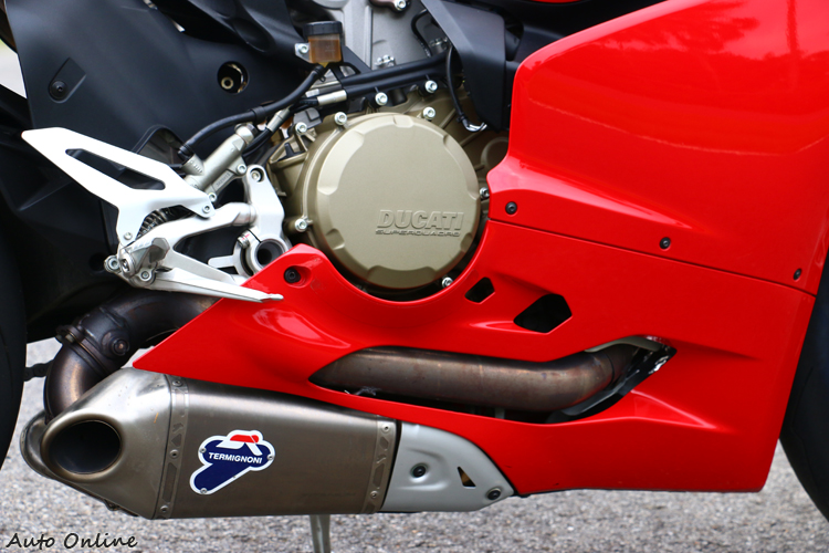 從車側望去油箱與整流罩將車側概分為三個區塊,每個小區塊間的線條表情都頗為豐富。我們試駕的車款已經換上Termignoni左右雙出的排氣管,完美的整合在車輛下方兩側,從後方望去也看不到任何突出感,收拾相當乾淨,這也是與前代最大的不同之處。
