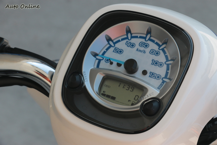 ▲Cuxi儀表採用指針與數位並行的設計,可顯示簡單的電壓與油量資訊。