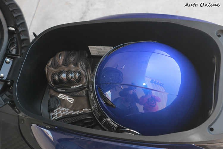▲Cuxi置物箱可放進一頂3/4行安全帽,還有一些小空間可以置入手套或包包等雜物。