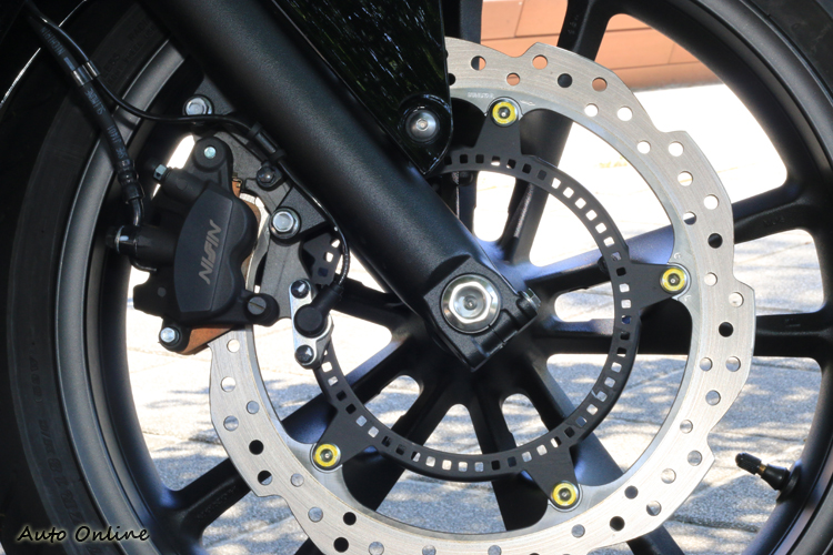 ▲標配ABS系統,前輪採用320mm碟盤與 NISSIN雙活塞卡鉗。