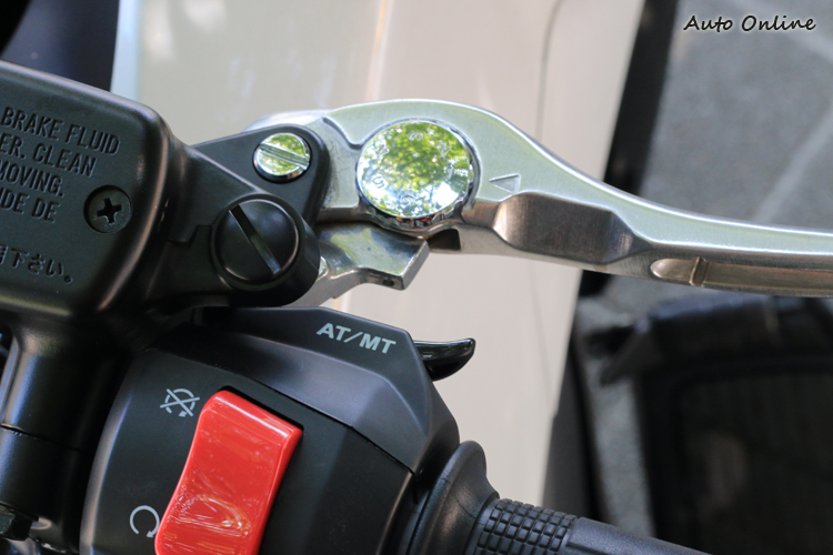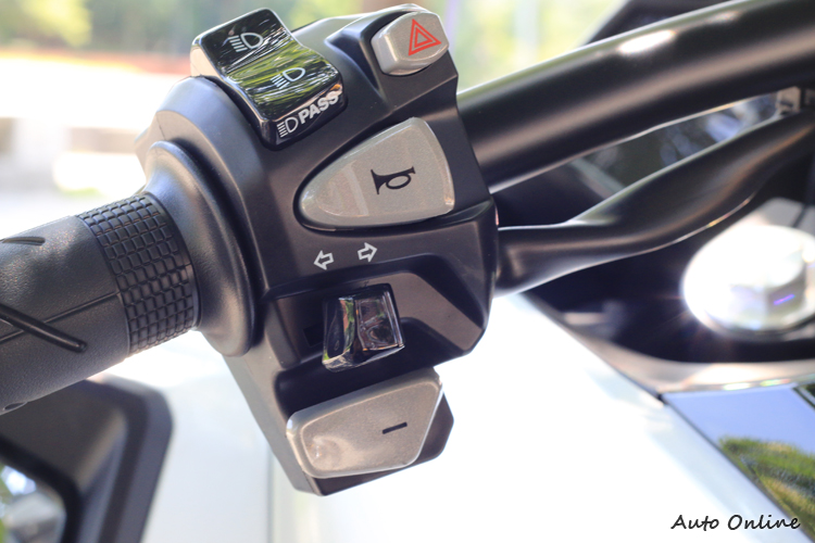 ▲左側把手設有手排模式的進退檔按鍵,共有六個檔位。