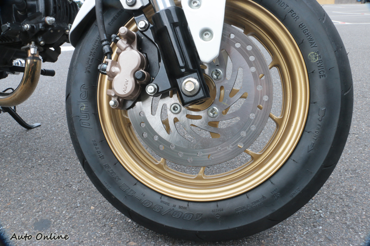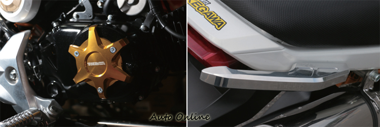 在提報MSX125試駕專題時坦白說心中是帶有點不屑,直覺地想那個傻子會花上14萬多去買一台不過125.c.c的白牌車,還是台12吋的檔車!沒想到還真的有這樣的奇人異士,更酷的是這位車主不僅花了14萬買車,後續又砸了10多萬的改裝費,舉凡後搖臂、排氣管、腳踏全部換上日本Takegawa部品,前叉彈簧與後避震則是用上高檔的OHLINS。