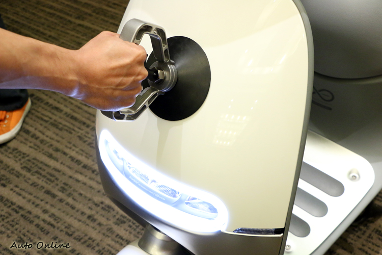 ![]() ▲將手機與iQ智慧系統連線,不僅可調整車輛的儀表設定,還可以直接檢測車輛狀態,並且透過雲端回報至主控台。筆者對於SmartScooter的第一印象就是圓潤的造型與簡潔的設計風格,但可別以為它就只是一部普通的電動機車,其實骨子裡結合非常多高科技的元素,包含無邊界全彩LCD背光儀表板、全LED的前後燈組、iQ智慧系統以及無線啟動鑰匙等科技配備,讓它一開電門就能立刻吸引旁人的目光。 ![]() ▲SmartBrite LED 可調式頭燈,不僅有形,夜間照明度表現相當優異。![]() ▲採用LED 環抱式尾燈提升夜間的辨識度,為了加強品牌形象,Gogoro還刻意將牌照燈設計成反向照明。![]() ▲iQ智慧系統、手機、無線鑰匙,是SmartScooter重要的三個系統元素。![]() ▲輪圈採用三塗三烤的工法,前後制動系統都採用碟式剎車。![]() ▲前面板的風格可以自由更換。![]() ▲隱藏式掛勾是個便利的小配備。