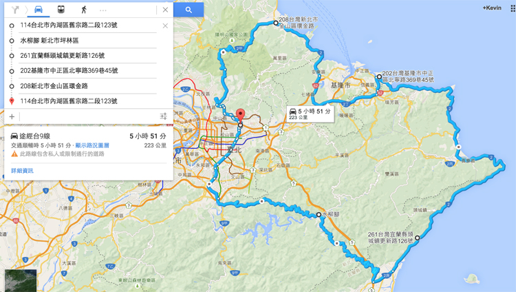 ![]() 兩年前許多四輪汽車媒體朋友參加過「恒典摩托訓練學院」的課程,也順利考上了大型重機的駕照。綽號「加菲貓」的院長「陳琮閔」同時也是引進彎道聖經~「加州賽車學校」的代表,在我們的影音專區中擔任二輪影片的專業解說。 ![]() ▲北台灣250公里一日長征從內湖舊宗路的台北據點出發!![]() ▲台灣本田二輪部副部長胡秋斌花了很長時間研究重機市場,終於決定讓本田翅膀再度回到台灣。![]() ▲本次試乘活動行程非常緊湊,台灣本田聘請攝影團隊幫大家拍照,以下的追焦都是特聘攝影師拍的,紀念照也是一定要的!![]() ▲我用Google Map模擬了整趟路程,顯示總路線223公里。這路線挺全面性,有北宜與陽金兩段山路之外,還有濱海以及台62快速道路的高速體驗,相當棒的規劃。