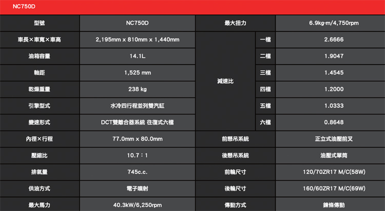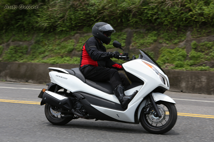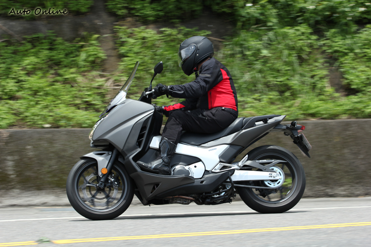 第三名NC750D (INTEGRA) 看似綿羊 操控不輸街跑車 售價:51.8萬元 這部車外觀看起來像大綿羊,卻用上了和NC750X相同17吋的鋁圈規格,使得這部看似紅牌大羊的速克達擁有非常不同的騎乘特性。後懸的角度和NC750X完全不一樣,懸吊行程短且較為硬朗,坐姿與重心更低,有中柱但傾角也還不錯,我騎北宜下半段時,驚覺這車的操控性比NC750X更好。由於只有DCT配置,雙手分別控制前後煞車,騎起來和大綿羊無異,很容易上手。軸距長而穩定,高速奔馳時風鏡很好用,稍微低頭就可以完全避過風壓噪音。唯一的缺點就是座椅下方的空間實在太小,僅夠放一頂半罩安全帽,這在傳統速克達是不被允許的。要買這台車,一定要選配後掛甚至側掛行李箱,以彌補置物空間不足的問題。掛上後箱或側箱後,上車可前跨,不致側踢到後箱,實用性突然變成滿分啊!只是得多花些許銀兩。 ![]() ▲十足的羊皮狼!NC750D低重心配上DCT聰明自手排,街車等級的17吋輪圈操駕起來非常棒,千萬不要拿T-Max 530來比。