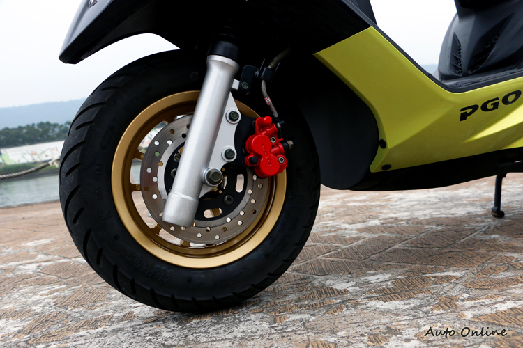 ▲ABS版搭載全新10吋鋁圈,前輪搭載200mm碟盤與單向二活塞卡鉗,後輪則為鼓式煞車。