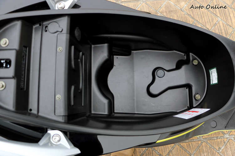 ▲車廂維持一樣的空間表現,可放下一頂四分之三安全帽以及一組雨具。