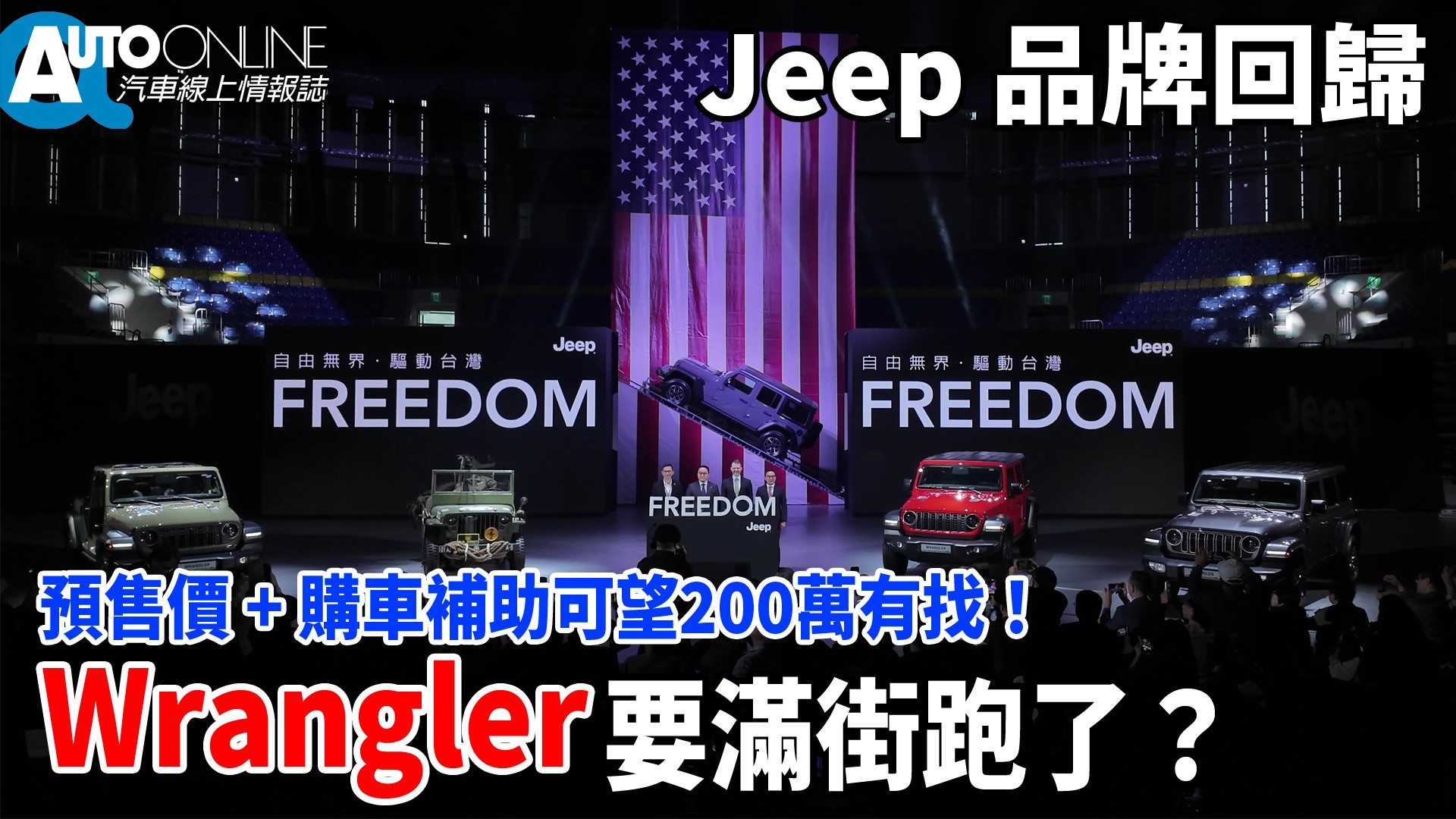 Jeep重返台灣市場,首波導入Wrangler車系的Sahara與Rubicon兩款車型,預售價新台幣209.8萬起,若配合政府最高10萬元的購車補助,消費者有望在200萬內入手美國最具代表性的越野傳奇品牌!