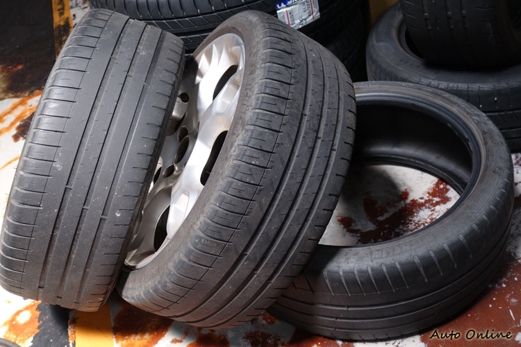 ▲拆下的舊胎已經用了3.6萬公里,雖然還是很有肉,不過已經出現偏磨耗和龜裂現象。