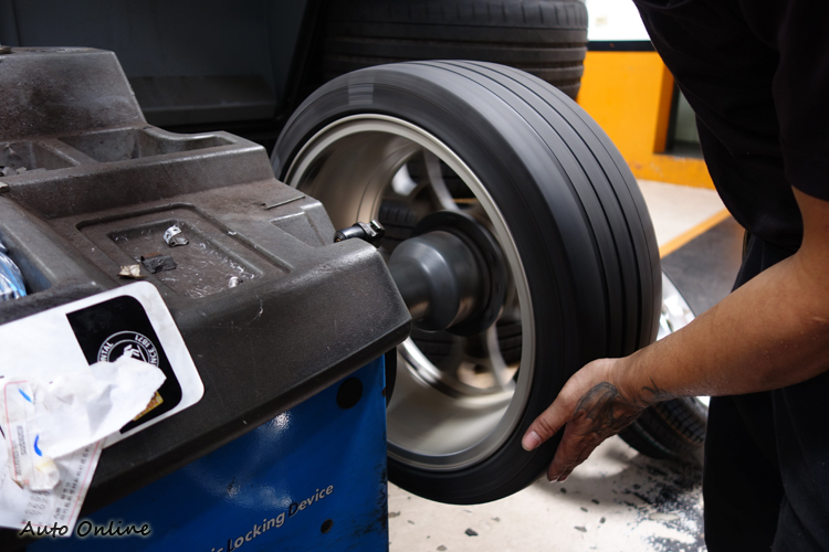 ▲輪框順便更換金屬氣嘴,外接式TPMS記得要先裝上再進行平衡,才能確保行駛時不會偏擺。