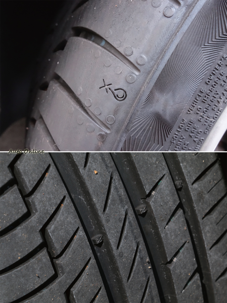 ▲PC6除了按照法規要求提供剩餘1.6mm的TWI磨耗標記,胎溝上還有個剩餘3mm的標記,這是用以提醒此時溼地性能可能開始下滑,建議提早更換新胎。