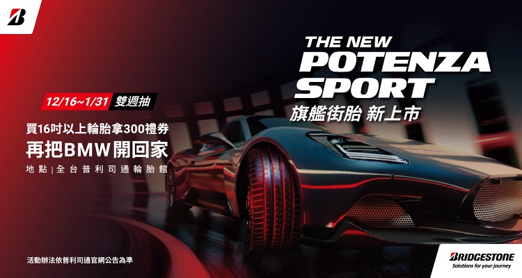 普利司通推出全新旗艦POTENZA系列性能胎─POTENZA Sport。POTENZA Sport導入最先進的製程技術,並展現極致的抓地性能,完美實現「為極致旅程而生」之精神。承襲並強化POTENZA系列輪胎的關鍵性能,以其出色的過彎與直線穩定性,樹立專業、頂級運動性能的新標竿,不論在乾濕路面都能為駕駛帶來絕佳的操控體驗。