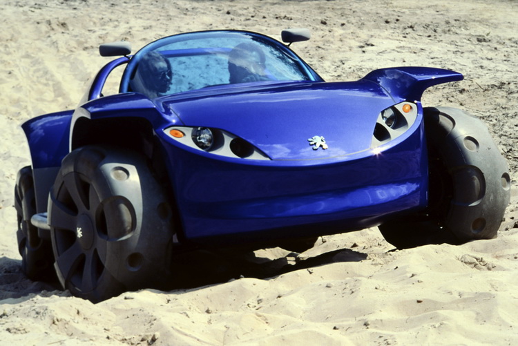 e-doll與Bobslid概念車─2000年 2000年巴黎車展上,PEUGEOT展示了四台以都會移動為主題的概念車,其中兩部搭載純電驅動系統的就是e-doll與Bobslid。其中e-doll搭載兩具直接移植自PEUGECT速克達的電動馬達,可以乘坐三名乘客。Bobslid同樣可以乘坐三人,前排一位、後排二位。動力方面則是分別由配置於四輪之輪內馬達(動力輸出為5kW)所驅動,車子的操作則是使用兩個置於駕駛者雙腿間的操作桿來控制,是部滿懷夢想的概念車款。