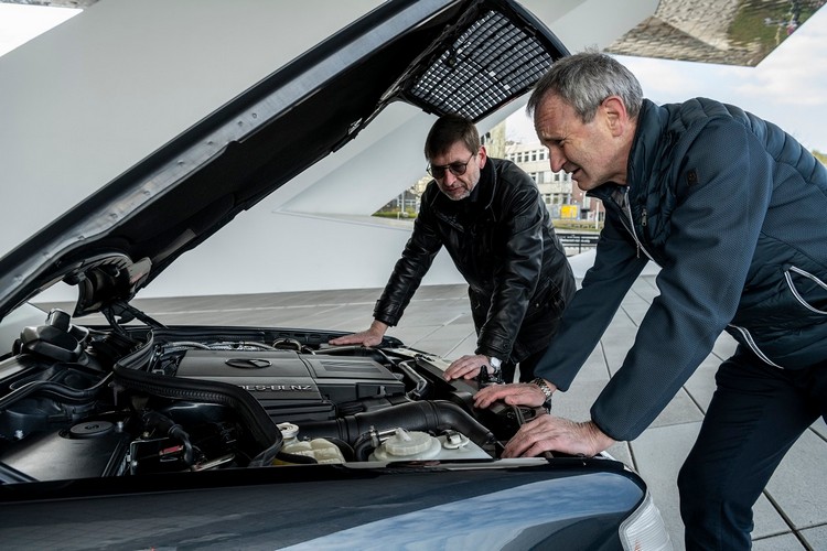 ![]() ▲Hölscher和Mönig細細端詳獨特的外觀空力套件,對於車體製造部門同事的能力及卓越遠見感到無盡欽佩。1988年,保時捷從Daimler-Benz AG獲得這項專案的開發合約,雙方在下圖爾凱姆 (Un-tertürkheim) 簽約。確切的專案要求為「為W124基本款帶來開創性的設計」,且要使用500SL的5.0升V8四氣門引擎。截至1995年4月,開發團隊製造出了10,479種樣本 ── 全都是四人座(因為後軸差速器龐大的體積,佔去後座中央的底部的空間)。 ![]() ▲為了慶祝500E成為經典之作和紀念誕生30週年,保時捷博物館邀請到兩位參與開發的重要人物,來介紹這輛車的精彩故事。
