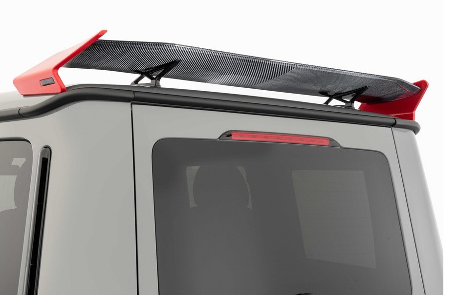 BRABUS 900 ROCKET EDITION全車上下充滿著強悍暴力的氣息,車頭下緣配備有著側翼片的碳纖維製前下擾流。車尾除了與之呼應的車頂擾流尾翼外,下方也有改裝的分流器。前後輪導入碳纖維製外擴輪拱強化視覺。