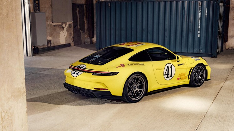 此外,最新款的911 S/T也以同款淺黃色特別訂製生產。這輛車透過保時捷的特別訂製計畫「Sonderwunsch」進行手工塗裝,由於許多碳纖維零件需要均勻塗上薄薄的顏色,因此這是一項難度極高的工藝。動力心臟為4.0升自然進氣水平對臥六缸引擎(最大馬力525PS),最高轉速達 9000rpm。搭配六速手排變速箱,車重為1380 公斤。