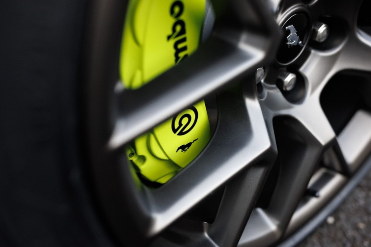 RTR 的升級讓 Mustang 成為更強大的甩尾機器。此套件採用 GT Performance Package的 Brembo 煞車系統—前六活塞、後四活塞卡鉗,同時 Ford 工程師借用Dark Horse 的後副車架以及前後防傾桿來強化車身剛性。