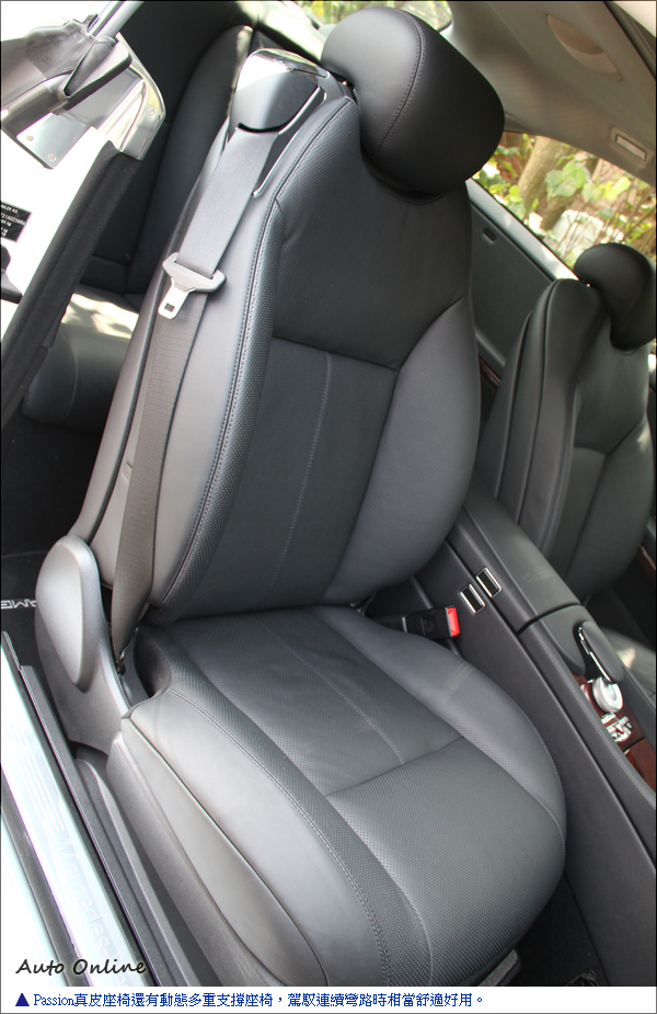通常雙門轎跑在車身曲線設計的時候為了營造流線性與動感往往會壓縮C柱,因此後座的頭部空間便會顯得較為侷促。但CL 500的後座經由182cm的試車員實坐之後,頭部與膝部都還有約4指幅的空間,是實用的2+2轎跑車。