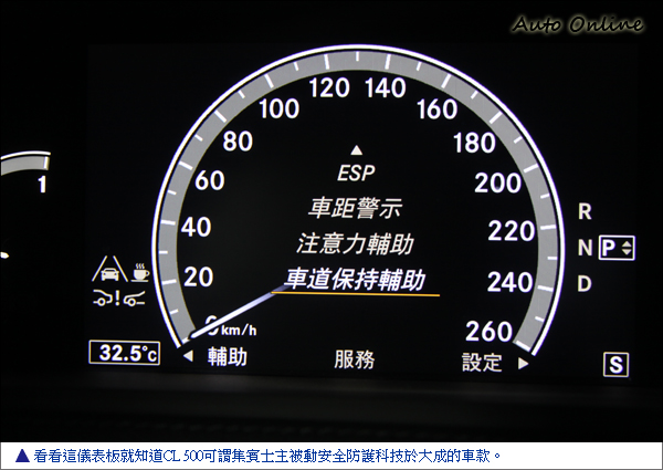 倒不是台灣賓士瞧不起台灣車迷,而是這套可以煞停的DISTRONIC PLUS所釋放的偵測頻率台灣不開放,所以現在CL 500所使用的是比較精略的版本。你會問頻道的問題車廠沒能力改變嗎?是可以,但我想德國車廠評估台灣的市場後應該不會額外設定一套專屬台灣市場的頻率。