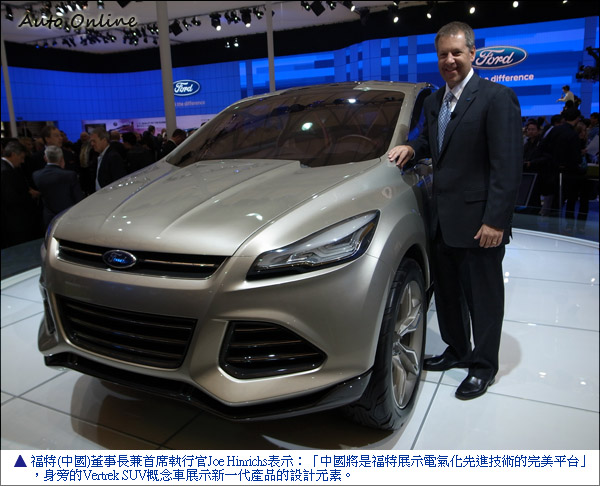 福特汽車亞太和非洲區總裁、福特汽車(中國)有限公司董事長兼首席執行官韓瑞麒(Joe Hinrichs)表示:「隨著中國日益重視新能源汽車發展計畫,這裡將成為福特展示電氣化計畫以及先進技術的完美平台」。