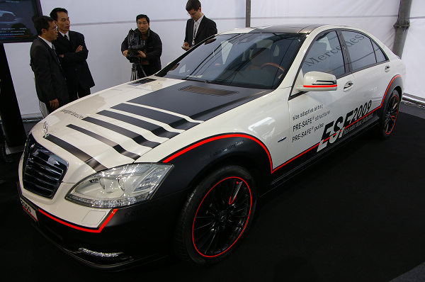 本次體驗營也有相關的模擬機台讓大家能夠不必上路,就能親自體驗到新科技的好處;首先必須先介紹非常難得來到台灣的ESF 2009實驗車,這輛架構於S400 Hybrid的全方位全概念安全科技汽車,是賓士將過去所發明、與未來尚未量產的各種創新安全科技全部裝配於這輛車,作為科技研發的工具,也讓ESF 2009成為展示賓士汽車安全科技的最佳道具。根據了解,上一次賓士開發這種實驗車,已經是追朔到80年代了,即使是規模如此龐大的賓士車廠,全球也只有這一輛實驗車,地位如同鎮廠之寶,因此外借極為困難。本次ESF 2009能夠來台展出,是經過台灣賓士不斷與原廠磋商結果,利用上海車展前的檔期空窗才讓德國母廠點頭,恐怕是空前絕後的難得機會。