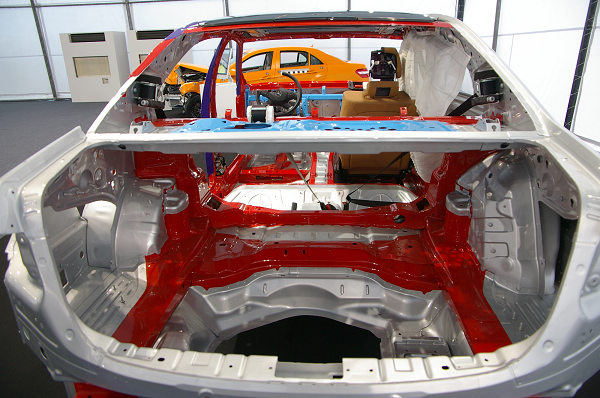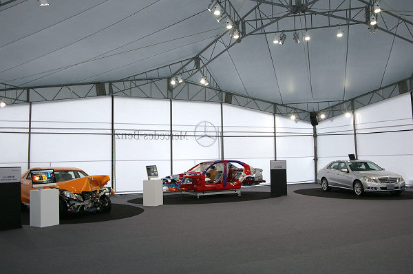 靜態展示方面,原廠特別運來符合EuroNCAP車頭偏位64km/h撞擊後的實車,以及去除車殼能清楚看到車體結構組成的展示車,用來說明賓士如何透過不同強度剛性的結構,營造多重潰縮的空間,來保護車廂內的乘客安全。除了法規要求的碰撞試驗,賓士廠內每年平均自行進行的碰撞試驗就超過500次,這種頻繁而大規模的碰撞試驗讓工程師設計出最佳防護車體結構,藉此達到最全面的被保護效果。