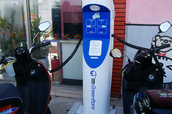 ![]() ▲澎湖低碳島e-moving充電站成立,工業局葉維煜科長,能源局黃育欽專門委員,7-11行銷群服務商品部王炳蘊部長,澎湖縣呂永泰副縣長,中華汽車劉興臺總經理,環保署胡明輝科長共同啟動。而為了吸引更多遊客選擇電動機車,現在中華汽車更在菊島的19個7-ELEVEn門市設置快充站,部份門市也有室內充電站,配合遍佈馬公、湖西、白沙、西嶼、吉貝、七美的各機車行、租車行、澎科大、飲茶業者...的快充站網路,在101年10月前免費提供EM50及EM80進行交換電池或充電的服務。換句話說,現在到澎湖騎乘e-moving電氣二輪車,除租車費以外,完全不需在電力上花一毛錢! ![]() ▲掛有「充電交換站」的19家澎湖7-11超商,戶外設有電池快充服務。