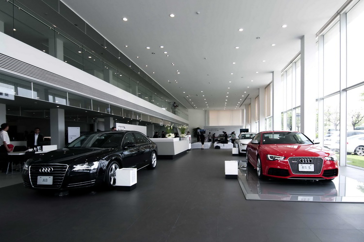 全新AUDI彰化全功能展示中心擁有寬敞的腹地,佔地總面積逾1500坪,總投資金額逾新台幣一億元,新穎的建築本體除了外觀表面以經過AUDI原廠認證的蜂巢形沖孔鋁板覆蓋,營造出強烈的科技氛圍之外,內部採用挑高設計再加上裝潢與陳設亦完全比照AUDI Terminal旗艦館的原廠等級設計規格斥鉅資精心打造,並規劃有設置德國原廠高檔傢俱的顧客專屬VIP休憩區域;值得一提的是,整座展示中心均採用以環保節能為訴求的LED照明及複層Low-E玻璃,不但能夠有效阻隔太陽光的紅外線和紫外線所產生的熱能,又能保持良好透光性,兼具採光良好和隔熱的雙重效果。