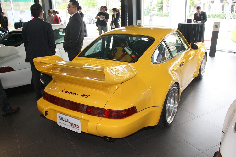 911 Carrera RS 3.8(964)![]() 第三代911原廠代號964也算是911經典產物,與前幾代相比有高達85%的車輛升級,像是底盤材質、車身造型、引擎動力或者內裝設計在964上都有大幅度的提升。而眼前這輛更是輸量稀少的3.8L的版本,最大馬力有300hp/6,500rpm,最大扭力360Nm/5,250rpm,從靜止加速到100km/h只要4.9s,最高極速高達270km/h。1993年911 Carrera RS 3.8只生產90部,而台灣只有這一輛。