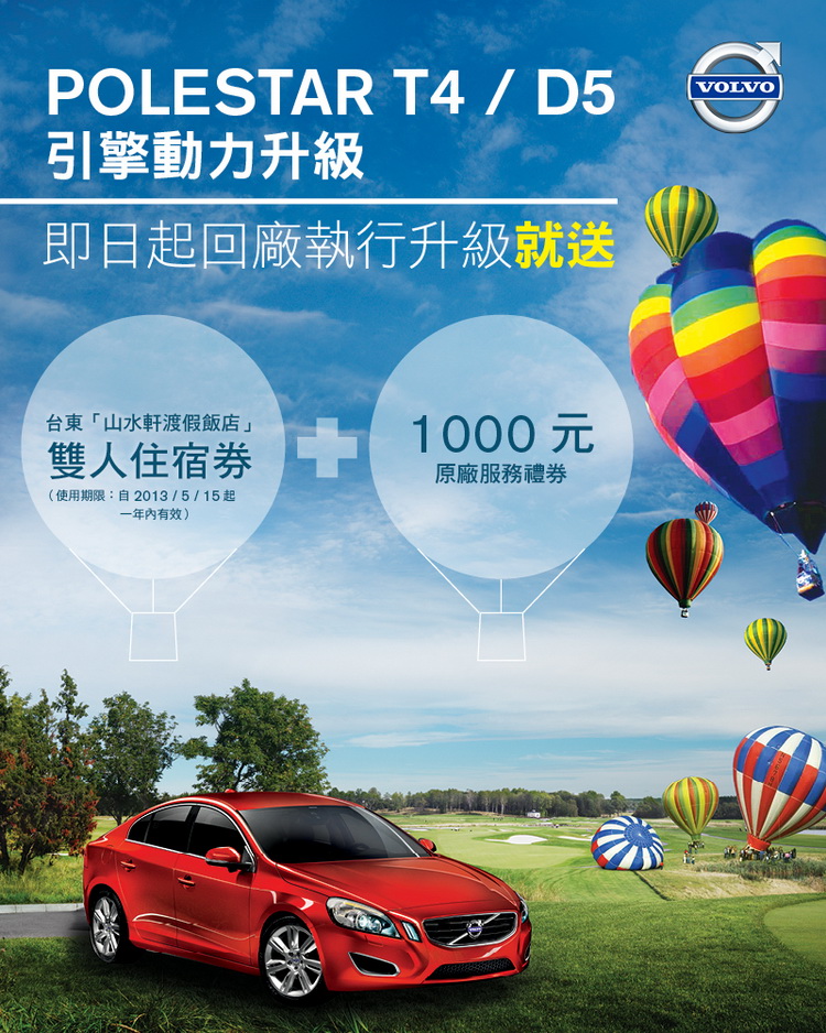 ![]() Polestar Racing自1996年起成為VOLVO征戰各大國際房車賽事的官方合作夥伴,對於VOLVO車系的外觀、動力、底盤…等的性能擁有相當豐富的調校經驗,因此Polestar團隊操刀的「Polestar性能升級」服務可以說是累積國際賽事經驗實現在市售車款的最佳展現。 ![]() ▲安裝「 Polestar 性能升級」服務 即可免費獲得台東山水軒渡假村雙人住宿券乙張和 VOLVO 服務禮券因為嚴格縝密的研發流程,所以「Polestar性能升級」服務具備VOLVO一向堅持的高品質,也因此VOLVO提供了新車安裝隨車三年十萬公里或售後安裝一年二萬公里原廠保固的保證,確保車主在提升駕馭樂趣之餘也可以安心無虞。 安裝「Polestar性能升級」服務 限量再享台東歐式渡假村住宿和VOLVO服務禮券 此次國際富豪汽車引進的「Polestar性能升級」服務,可針對VOLVO車系搭載的多具汽、柴油引擎進行動力升級服務,以S60 T4汽油引擎為例,透過軟體升級的調校後,最大馬力輸出增加20 hp、最大扭力增加4.6 Kgm,是超高C/P值的原廠性能升級服務。 國際富豪汽車為了感謝首批安裝「Polestar性能升級」服務的VOLVO車主,限量推出「愛車升級 玩樂成行」酬賓活動,6月1日起至7月15日止,前80位VOLVO車主只要回廠安裝「Polestar性能升級」服務,即可免費獲得總市價約NT$4,000元的台東山水軒渡假村雙人住宿券乙張和VOLVO服務禮券,讓車主享受優越性能的同時,更能與親愛的家人、朋友來趟愜意的後山之旅,活動詳情歡迎造訪VOLVO官網VolvoCars.com.tw或洽全國VOLVO授權服務中心。