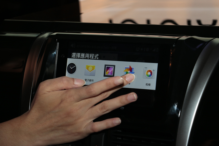 首創可插拔平板電腦之車用音響![]() 本次和泰發表的新世代車用音響主機具備NFC傳送技術,能快速與行動裝置配對,進行電話接聽與音樂播放。音響外框採特殊設計,可插拔選配之專屬平板電腦。整合後之平板電腦除保留原有功能外,更成為車用螢幕與使用介面,可操作行車紀錄器、倒車攝影、胎壓偵測等週邊用品,一機多用,無須額外購置影音主機。