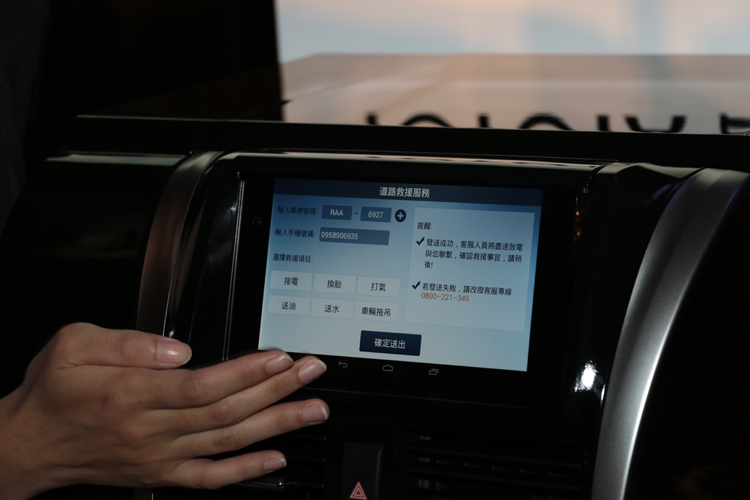 Car Mode全方位服務App![]() 內建於專屬平板電腦中之Car Mode全方位服務App,包含交通路況、車輛服務、事故處理、生活資訊等四大功能。交通路況支援語音查找地址及高水準導航軟體,車輛服務具備定保提醒、預約回廠、車況檢視…等實用功能,事故處理可透過第三方進行送水補胎、拖吊報案...等服務,生活資訊提供所在地週邊優惠訊息,未來將有更多開發計畫導入,將人車生活全方位整合。