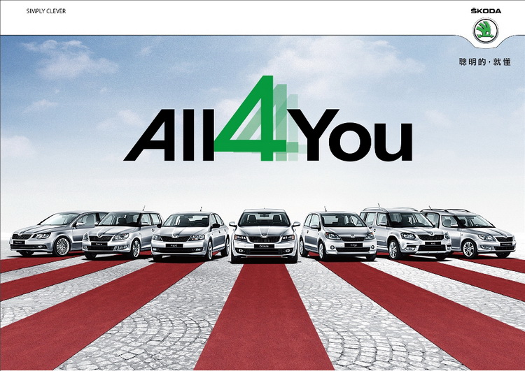ŠKODA Taiwan正式成立後的首要之務,也是業界的創舉,即是推出【All 4 You】專案:2015年1月1日起,所有自ŠKODA Taiwan所售出之車輛,均享有4年保固、4年3次免費保養及4年免費拖吊服務。【All 4 You】不僅是ŠKODA對未來每一位車主的長期承諾,以最直接的保固與服務回饋車主,提供令人安心的長久保障,同時更是ŠKODA Taiwan宣示立足台灣,深耕市場的決心與誠意。從今而後,邀請鍾情於波西米亞百年風華和其浪漫魅力的消費者們,讓ŠKODA Taiwan為您許下盡心盡責的長遠承諾。