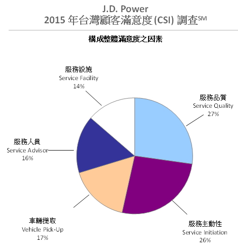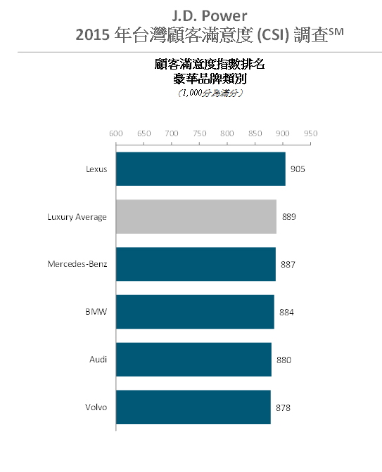 根據今天最新發表的J.D. Power 2015年台灣顧客滿意度 (CSI) 調查SM豪華品牌結果顯示,台灣豪華品牌車廠的保修需求量攀升,以致更多車主得等候預約。 這項調查評量新車車主對原廠授權服務廠售後服務表現的滿意度,主要根據五項因素進行整體滿意度評分,依其重要性排序為:服務品質、服務主動性、車輛提取、服務人員及服務設施。經銷商服務表現以1,000分為滿分。這項調查檢驗非豪華品牌市場的服務滿意度。