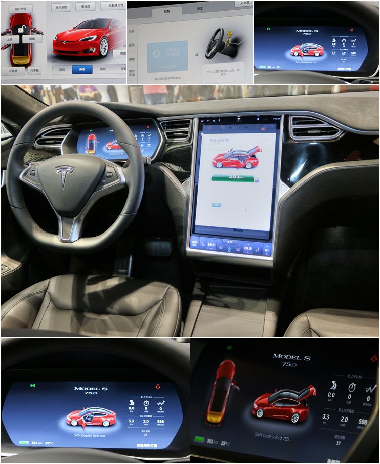 ![]() ▲Tesla表示,由於續航能力相當長,目前他們全球的客戶,絕大多數都能藉由車輛附贈的壁掛式家用充電座即可滿足充電需求。Tesla指出,Model S續航里程最高可達557公里(NEDC),超級充電站只需短短20分鐘即可為Model S充滿一半電量。車主可以透過全省各地的公共充電站、Tesla隨車附送的壁掛式家用充電座(每小時充電100公里)及目的地充電站為車輛充電(每小時充電100公里)。 ![]() ▲超大17 吋觸控螢幕整合了媒體、導航、通訊、駕駛室控制及車輛設定的功能,與數位儀錶板同為車內操控核心。