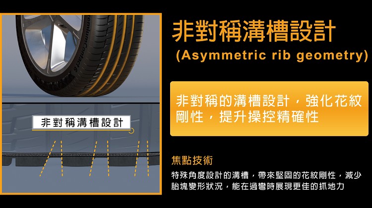 三、 操控優化(handling-optimized pattern design)的胎塊結構,賦予每台車絕佳的運動操控性