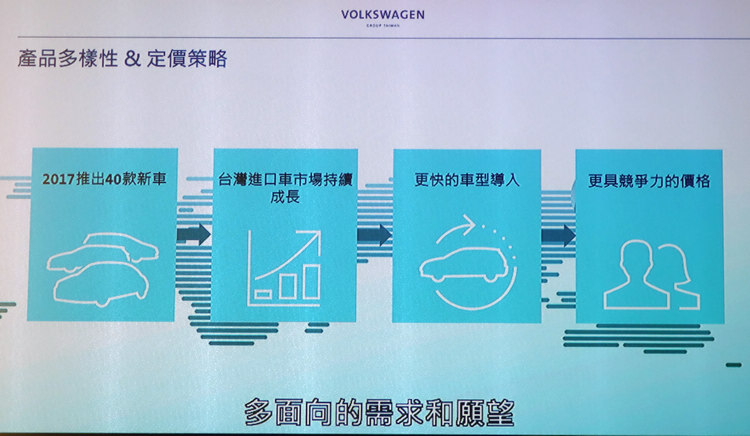 台灣福斯集團於12月18日舉行媒體餐敘,宣佈集團在台成立第四年,2017年Audi、Volkswagen、Skoda及Volkswagen CV四大品牌的銷售總數首度突破兩萬三千輛,成長超過16%,已晉升全台第三大進口汽車集團。台灣福斯集團承諾接下來將會加速引進最新車款,將電動車、自動駕駛技術、Car-to X 車聯網與 Carpool 車輛共享平台等先進科技與創新思維引進台灣市場,並與政府有關單位協商,加速落實國內電動車充電系統及自動駕駛相關基礎建設佈建。