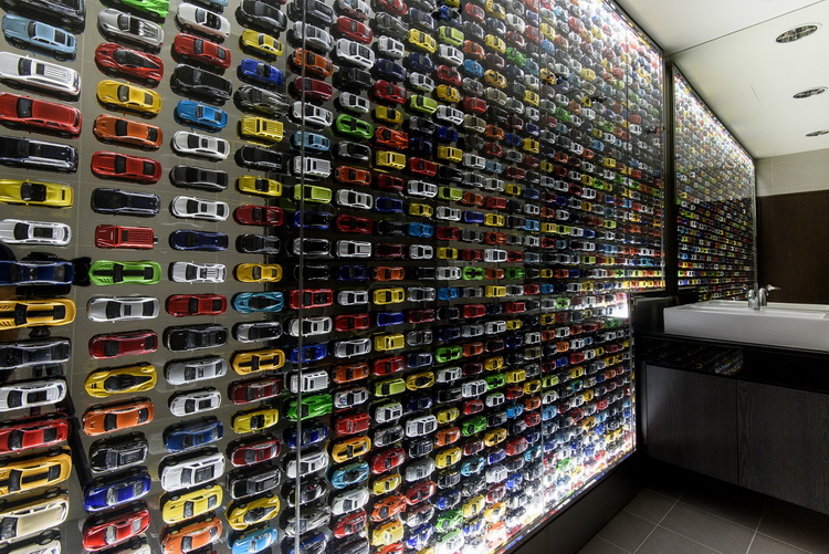 台灣雖然沒有開設Intersect by LEXUS,但台灣LEXUS希望這樣的品牌概念元素與台灣消費者分享,因此藉由LEXUS濱江的全新裝修不惜成本建置兩面Mini Car Wall。我們用近2千台1:43 近100種各品牌經典模型車款堆疊出男女化妝室的牆面,希望創造令顧客Amazing的視覺與空間感受。
